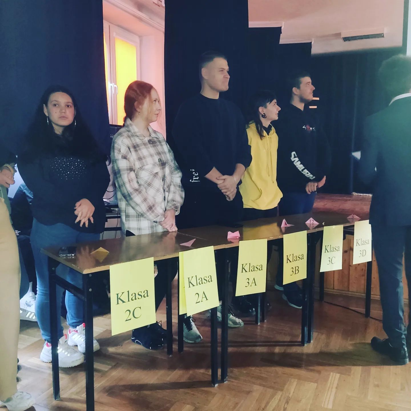 W ramach Dni Kopernikańskich został rozegrany międzyklasowy quiz 1z10 wiedzy o patronie szkoły - Mikołaju Koperniku. Rywalizacja była niezwykle zacięta, a do finału dotrwali najlepsi - klasa 2b, 3a i 3b. Pierwsze miejsce wywalczyli jednak w fantastycznym stylu Mateusz "Wiśnia- Pinki" Wiśniewski oraz Jolanta "Mózg" Lejca z klasy 3a i zdobyli całodzienny BON NA NIEPYTANIE dla całej klas.